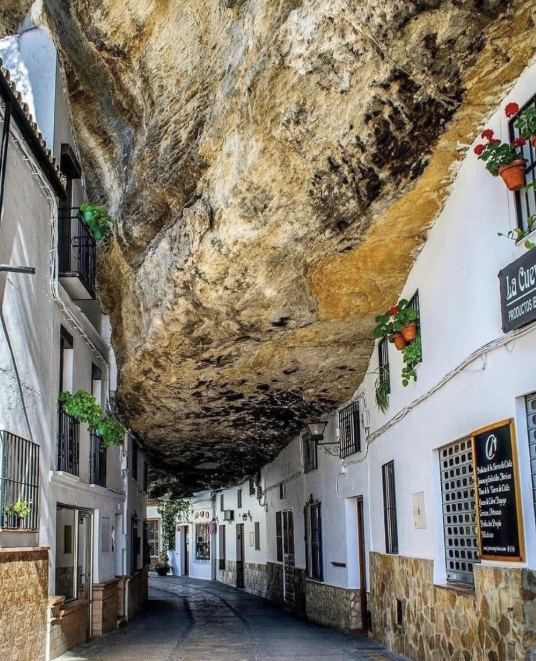 Walk through the famous streets Calle Cuevas del Sol and Calle Cuevas de la Sombra, where massive cliffs form natural roofs above the te